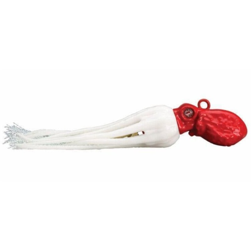 Due to weight or product plastic package could be cracked but product is brand new condition.Octopi is the world first octopus jigging system. With Octopus being a rare encounter, predatory game fish jump at the opportunity to make the Octopi its meal. The Octopi balance is fine-tuned to sit horizontally in the water column making it equally as effective anywhere in the water column. Qty 213 Fishing CB-OCT9-16 Octopi Jig, 9oz, Interchangeable Skirt, RapidDescent, Red Head/Pearl White Skirt