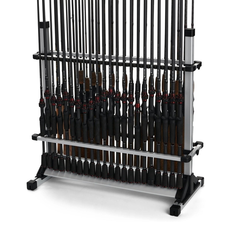The Abu Garcia stand alone 44-rod rack saves space while neatly and securely storing up to 44 rods or 22 complete rod and reel combos. Ideal for the shop, garage or cabin.