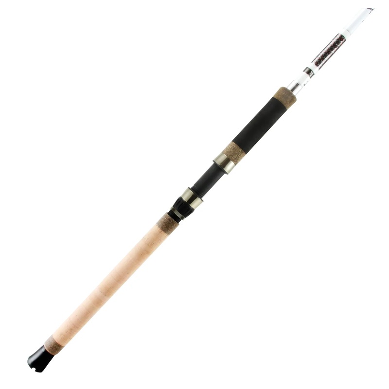 This professional-level rod is built for serious anglers with its immense power and high-durability components. It’s also easy to travel with, thanks to its two-piece design. And it can handle 1-8 ounces of casting weight and 15-60 pound line. The E-Glass construction and double-foot welded stainless steel guides make the Okuma Battle Cat Rod tough enough to handle anything you throw at it. Plus, the custom oversized handles provide supreme comfort and durability.