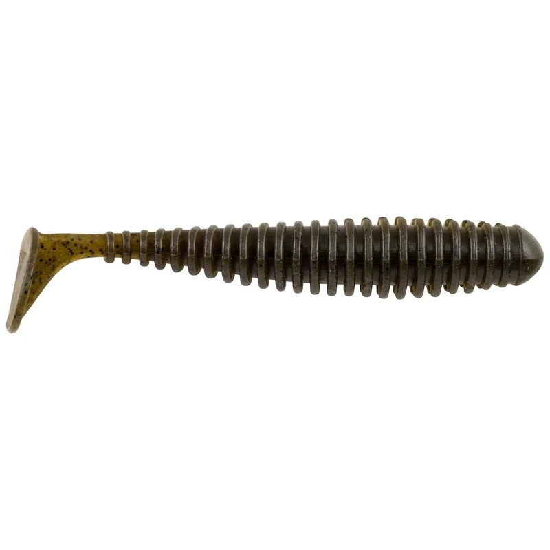 Delivering extreme versatility and unbeatable quality, the Berkley Powerbait Swimmer Swimbait features a shad-style body and tail action preferred by the top pros on tour. Perfect for all types of jigs, Texas-rigs, and even umbrella rigs, the Berkley Powerbait Swimmer Swimbait is crafted with a fully ribbed body to provide subtle vibrations and a large paddle tail that creates a wide swinging action through the entire body. It also features top and bottom hook slots for easier rigging and better hook penetration. Finished with a heavy dose of salt and infused with Berkleys Powerbait scent, the Berkley Powerbait Swimmer Swimbait is sure to become a favorite in tackle boxes everywhere.