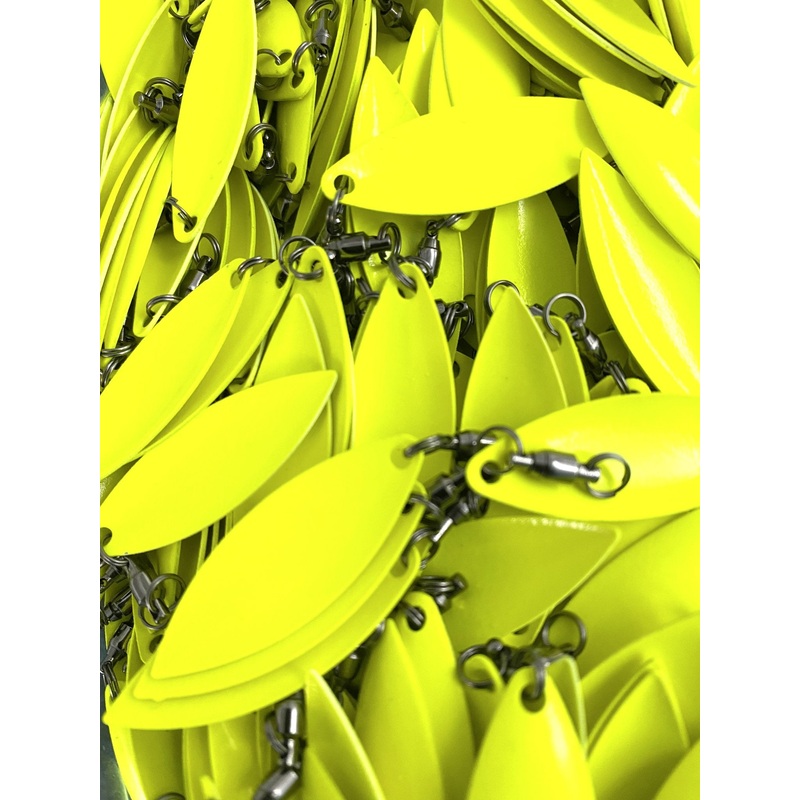 The HogFarmer BFL Rig has five wires, five blades, and three swivel snaps. Built with two blades on each of the top two wires and one blade on the middle wire. No blades on the bottom two wires, making your hooked swimmers a prime target and allowing the rig to run true.