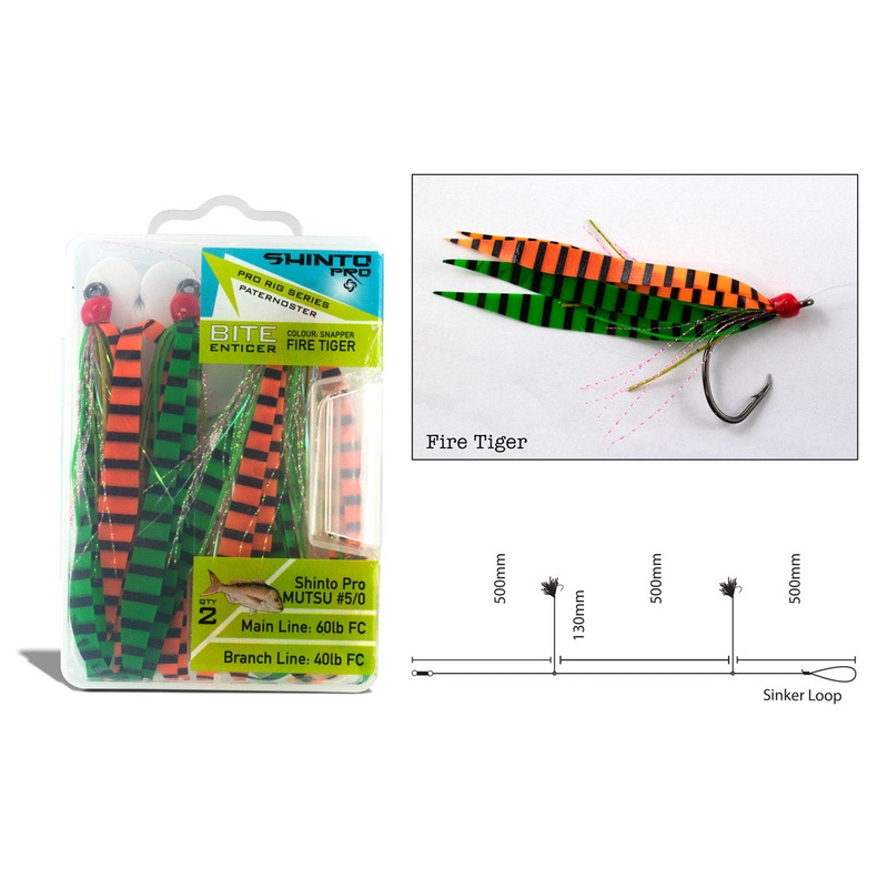 The Shinto Pro Bite Enticer Paternoster Mutsu Circle Rigs (2 pack) offer increased versatility and an effective presentation to target predatory estuary and reef-dwelling species like flathead, snapper and jewfish. It is made with flash-attracting dressings and fitted with hooks for molluscs, squid, salted fish slabs and a range of other baits. These rigs provides reliable fishing with easy setup.