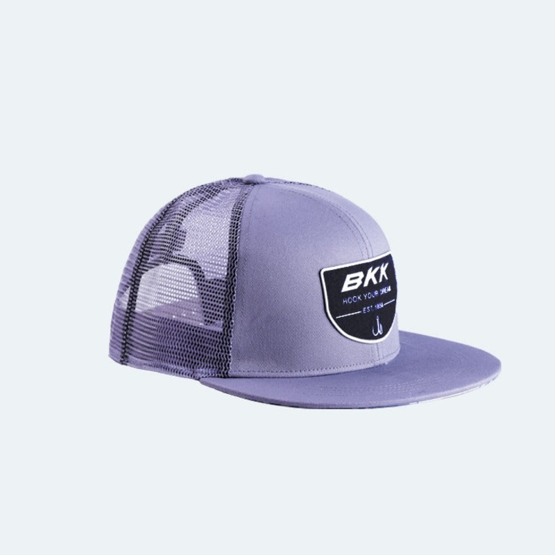 The BKK Legacy Snapback Hat is a flat-brim hat featuring a snapback-hat shape and a modern design in the front to level up your fishing outfit. The mesh fabric ensures the necessary ventilation to be worn for the entire day out on the water. Two color combinations available: blue and grey.