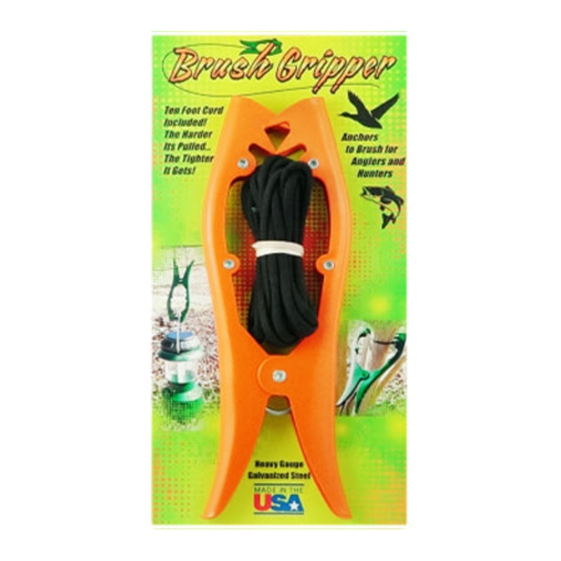 The Brush Gripper includes a 10 foot cord. The harder you pull the tighter it gets! Available in Green, Silver and Orange. Great for fishing camping and hunting!