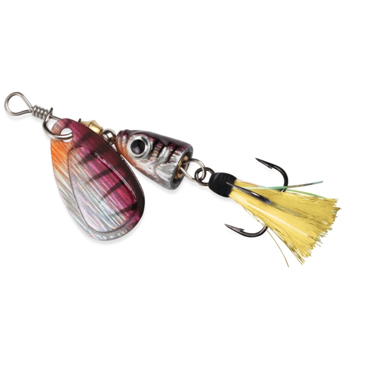 60 degree shallow depth blade runs surface to 2 feet. Great for skinny water, the Vibrax Shallow works over shallow structure or when fish are surface feeding with precise and irresistible action. Tinsel and calf tail convert the wary. Dressed tail adds size to profile and converts weary fish.