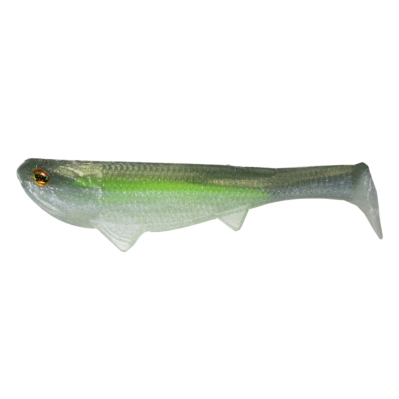 Developed by Fred Roumbanis, the Optimum Baits Boom Boom Swimbait delivers a signature quivering head action, tight body roll, and thumping tail kick for a “panicked action” to lure out large predators. The Boom Boom Weedless is designed to be fished around cover with a weighted twistlock hook. Swim it slow around structure or fast in open water, the fitted pectoral and anal fins will reduce rolling. Offered in various details colors, the Boom Boom is designed with a textured scale pattern and life-like head to match any baitfish.