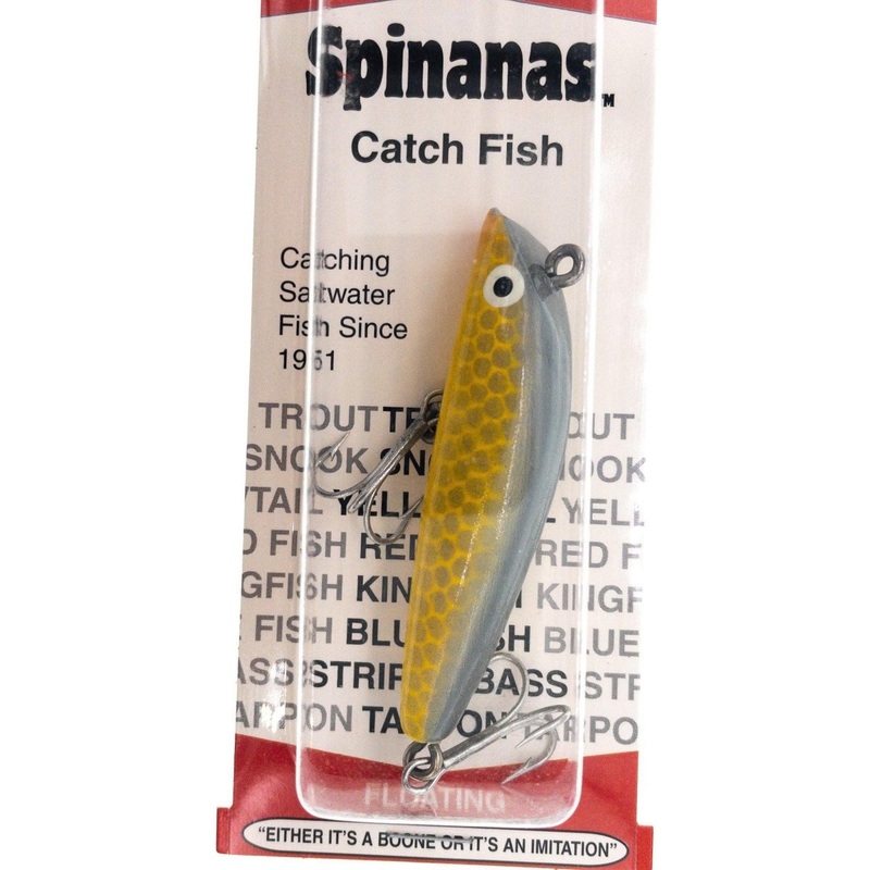 The BOONE SPINANA is a darting type floating lure, with extremely life-like action, that stays on top of the water when retrieved with sharp jerks. This banana shaped darter combines good surface darting action with excellent underwater wiggle when retrieved steadily. When reeled in with a steady pull, it goes under the water with a provocative wiggle. It is also excellent for trolling.