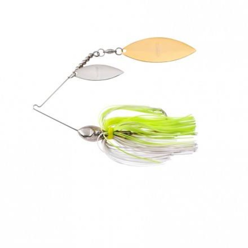 The double willow blade configuration produces a tremendous amount of flash, and allows you to retrieve the spinnerbaits at high speeds, making them ideal for clearer water. The blades are also plated with jewelers grade gold and nickel for added corrosion resistance and truer color. Rigged with only high quality components, including premium round bend hooks, ball bearing swivels, shad profile heads, and 55-strand silicone skirts, the Booyah Vibra Wire Double Willow Spinnerbaits are built to perform right out of the package. Just add water and catch fish.