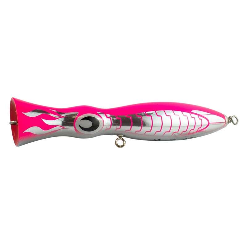 The Buku Pop P Popper is a serious Popper for serious fish that’s sure to be a game-changer on your next pelagic pursuit. To say these Poppers look awesome is an understatement and from the moment you pick up the lure the standout quality is obvious. If your passion is targeting huge pelagics such as GT, Kingfish, Dolphin Fish, Bluefin Tuna, Yellowfin Tuna or even a Billfish then give yourself the edge with the Buku Pop P Popper. Not only do the Buku Pop P Poppers come in a sensational colour range with added reflection but they also have an outstanding clear coat, super thick and super smooth putting this lure into a class of its own. Ready to rig to your own preferences the Buku Pop P Popper would suit high quality 4/0 trebles or can also be rigged with singles. The recommended split rings are high-quality stainless steel #8 Split Rings. Features: Floating Wire Through Construction Balanced Weight Amazing Colours Added Reflection
