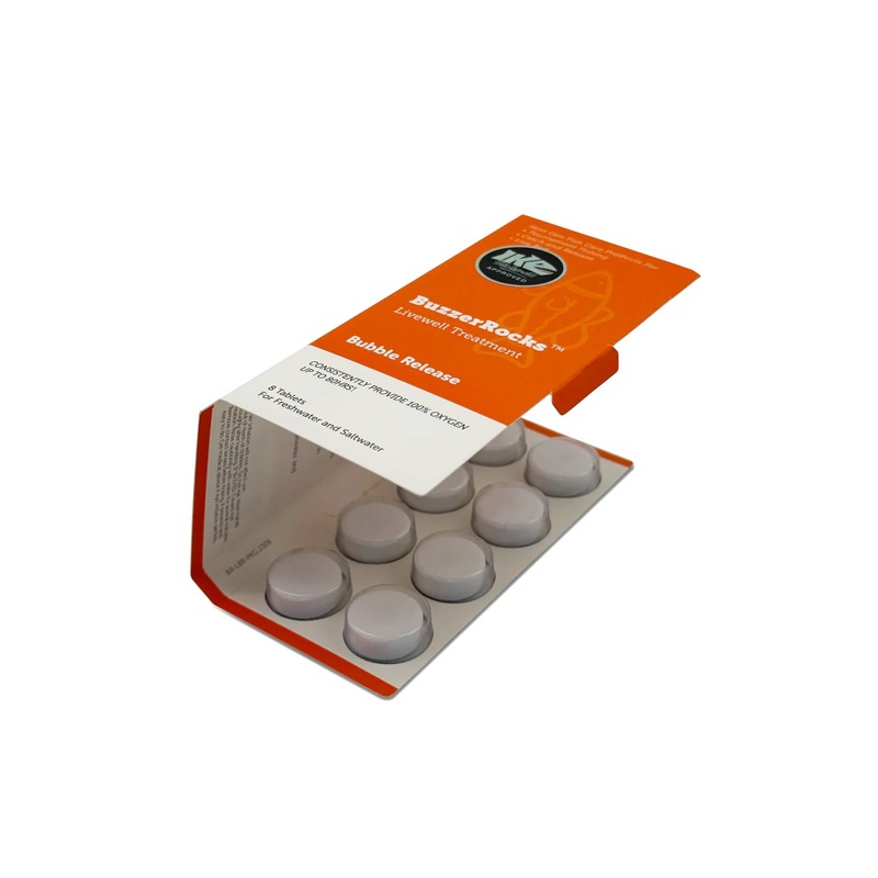 Significantly increase Dissolved Oxygen levels in your livewell water and help stressed fish get the oxygen they need to prevent potential mortality issues. The Bubble Release pill effectively increases the Dissolved oxygen level in the water with extended-release dosage for up to 10 hrs per tablet, while keeping the nitrate and ammonia levels in the water low. This formula will keep your fish alive and healthy in your livewell while you focus on catching more fish!