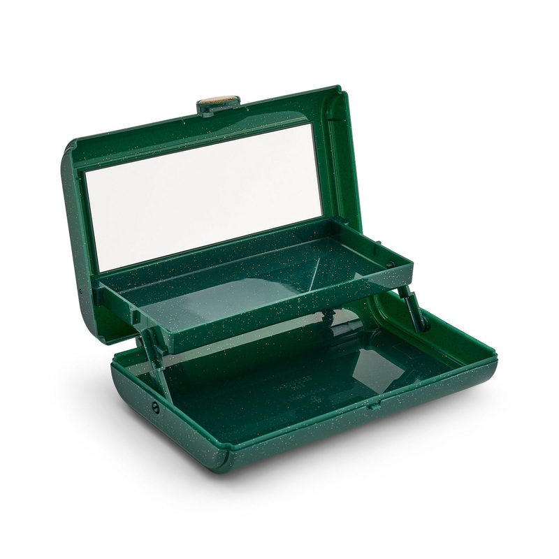 The Take It Tote Emerald City cosmetic travel case is just the right size for touch-ups when you need to add a little glitz to your glam. Inspired by the Wicked 2024 motion picture, this Limited Edition portable makeup case features an auto-open tray, a snap-tight lid, and a large fashion mirror. Its small enough to fit in a tote, gym bag or backpack, but big enough for your makeup and hair essentials. Take It with you and keep your style on fleek!