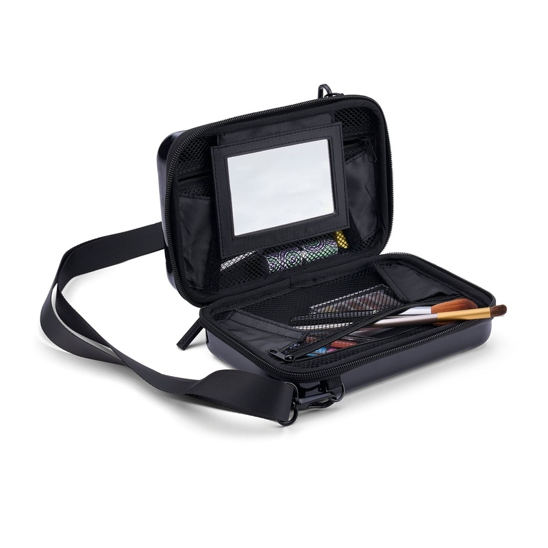 Toting your make up essentials doesn’t have to be a hassle. The large Metro Moxie Case has adjustable dividers to customize the case to your needs. A large zippered pouch keeps items separate and the mesh fabric allows for easy viewing of what’s inside. Specially designed holders for makeup brushes and pencils keep you organized and prepared. The case can be opened to 180 degrees for easy configuration and storage. The strap can be worn cross-body or on your side for effortless portability, while keeping your look on point.