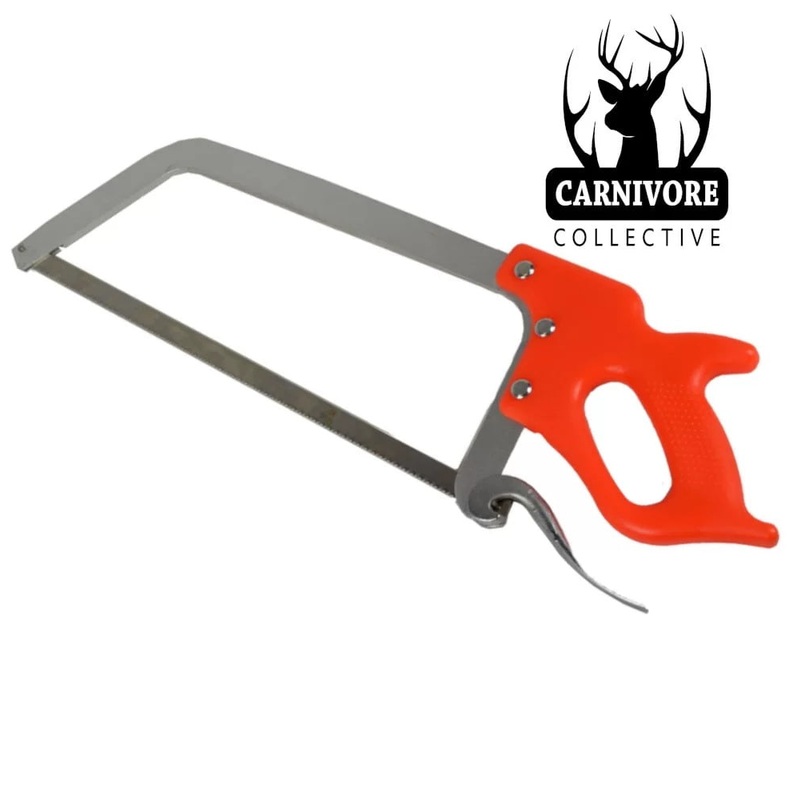 The Carnivore Collective Meat Saws are the perfect hand tool for breaking up the bone and carcasses of lamb, beef or pork. Heavy Duty Stainless Steel perfect for home butchers, hunters and chefs. The thin blade on the meat saw is made stiff by holding the tension within the frame and the pull stroke action performed allows the user to cut through the carcass with ease.