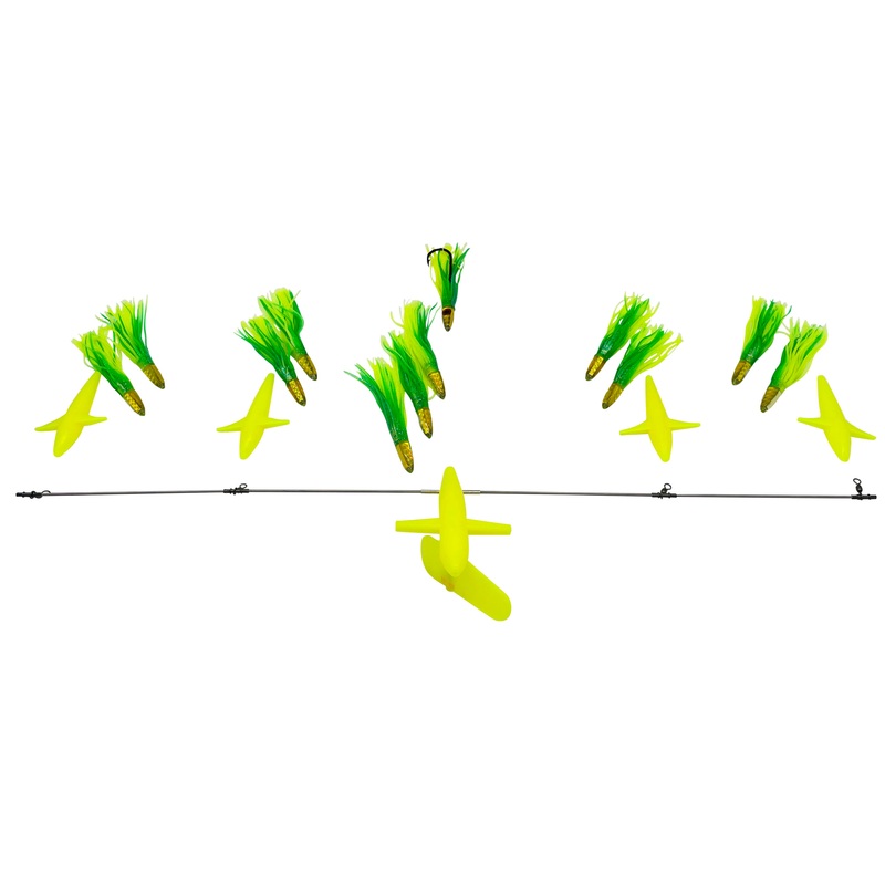 - 36″ Spreader Bar (1/8″) with patented Side Tracker Bird and (4) 5″ chatter birds.