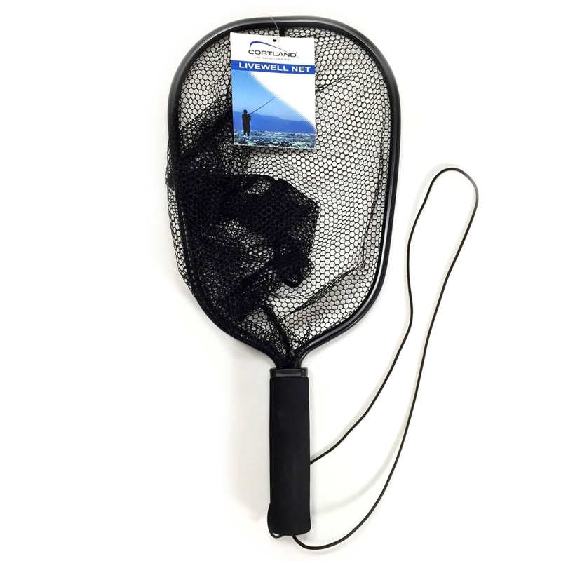 The Cortland Fairplay Livewell Net will allow you to catch more fish on your next trip. This versatile and compact net is made with a sturdy black mesh that is tightly woven. Its small square size allows you to safely remove fish or bait from your livewell as well as land fish from the water. The Livewell Net has an elastic lanyard to prevent the chance of it slipping out of your grasp. The same cord can be used to hang the tool up between uses for easy access. Designed for fresh or saltwater use, this net works well for those who are fly-fishing and equally well for those who are on the shore or in a boat.