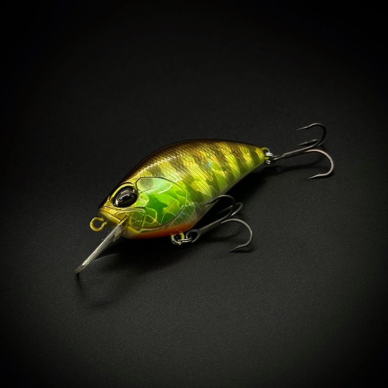 The Crank 55SR is a shallow running crank (swim depth of 1.5 ~ 1.8m) with a semi-flat body and square bill. Reeling resistance is set to be very light. Equipped with a fixed center of gravity for great action. High pitched wobbling action with maximum water displacement is achieved by the body and square lip design.