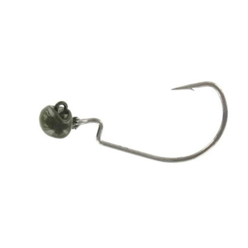 The Bass Patrol Deflection Jig Head is a free-motion football jig head with a 4/0 VMC offset hook to allow a wider range of motion with your favorite creature bait trailer.