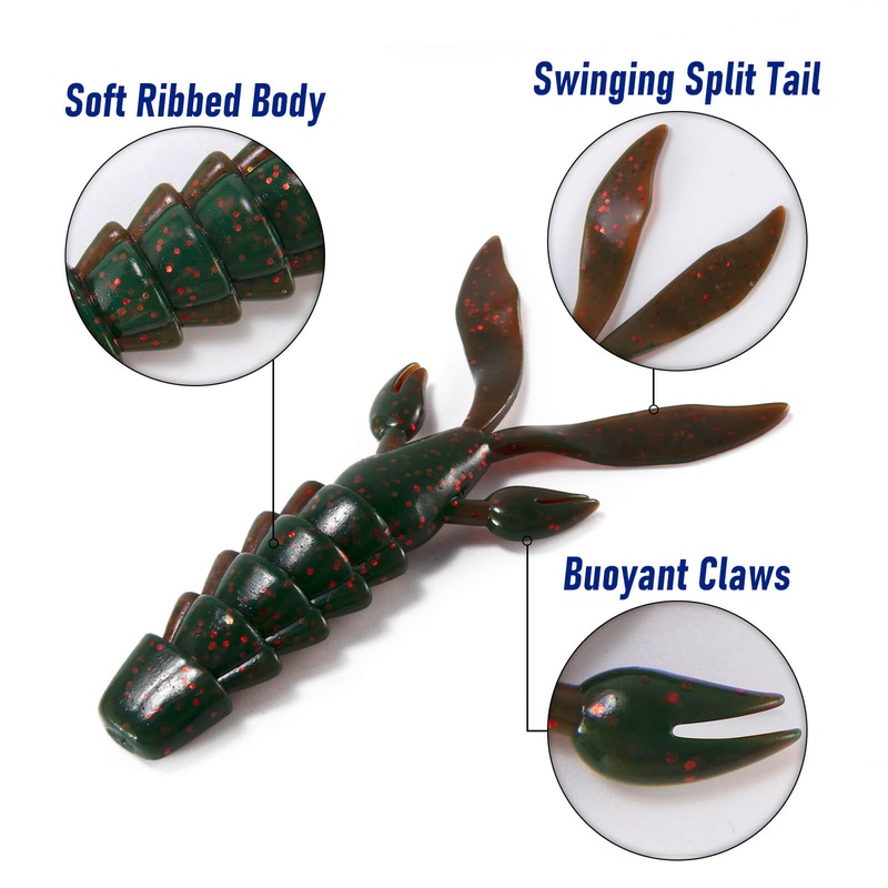 - Made of soft and flexible plastic material, the crawfish soft bait provides great tear resistance and durable construction. That is the first choice for skill lovers.