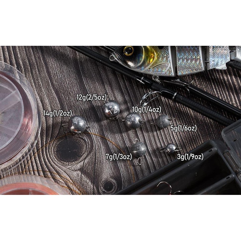 DIFFERENT SIZES FOR SELECTION: 3g(3/32oz), 5g(3/16oz), 7g(1/4oz), 10g(3/8oz), 12g(2/5oz), 14g(1/2oz), 6 sizes for you to choose from, to meet your different needs in different situations.