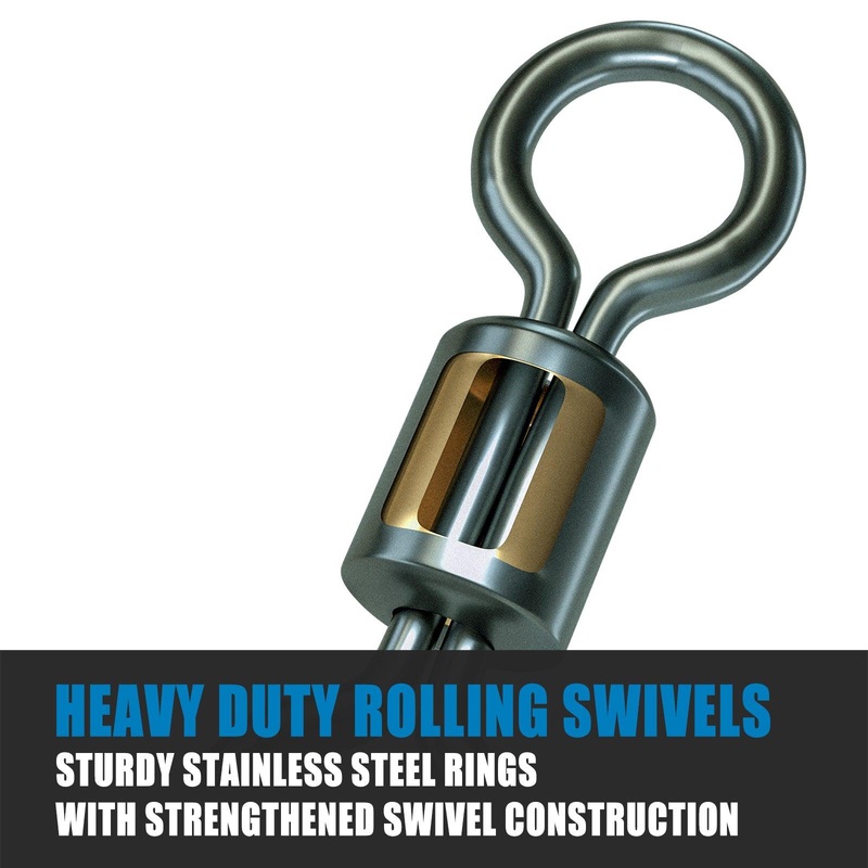 These swivels have an ultra-smooth rotation. Round swivel eyes ensure maximum knot strength. They are for attaching your main line to leader, for reducing line twist, or if you make your own wire traces, for rigging at the end. Its black color reduces light reflection and swivel-attacks from toothy fish.