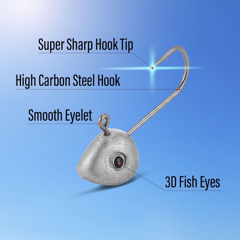 - Jig Heads Design: With its realistic fish head profile, this leaded head will give your soft lures the perfect look of a real forage fish.