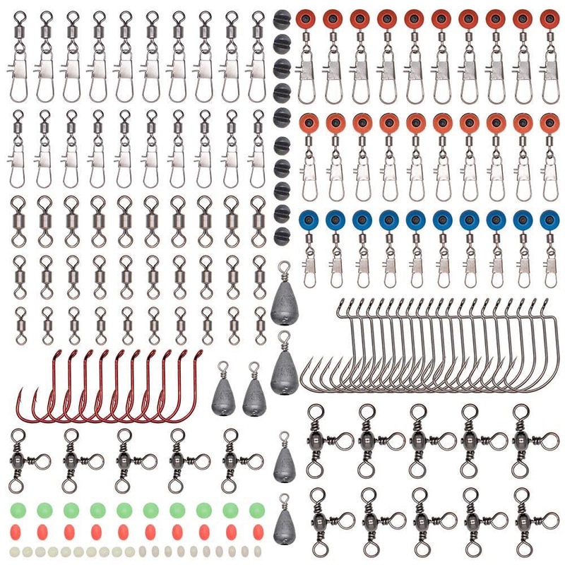 - HUGE QUANTITY:262pcs multifunctional fishing terminal tackle kit including swivels snaps, hooks, jigs, beads, weights and tackle box.