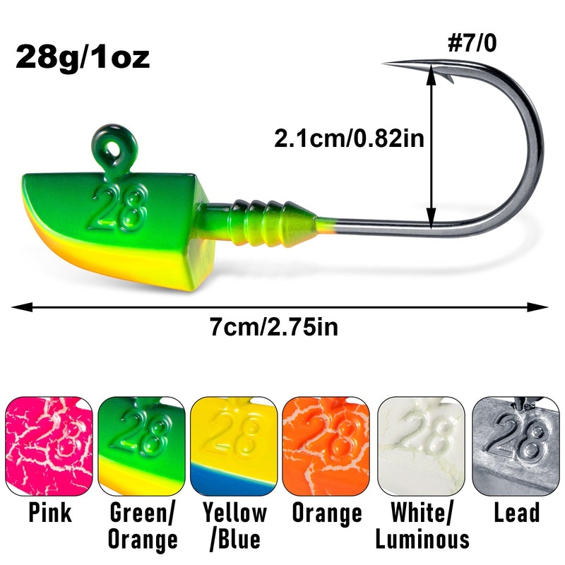 Compatibility is key, and this jig head excels in that aspect. Engineered to work seamlessly with different soft lures, it provides anglers with the flexibility to experiment and adapt to changing fishing conditions. The combination of the bullet design, vibrant colors, and soft lure compatibility creates an irresistible presentation that is sure to trigger strikes.