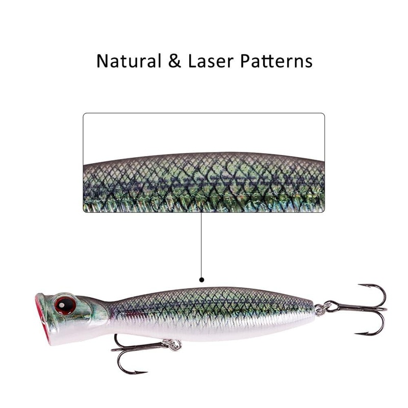- Manufactured by the same OEM factory of those big brand lures, this popper features the latest technology, long-lasting laser painting.