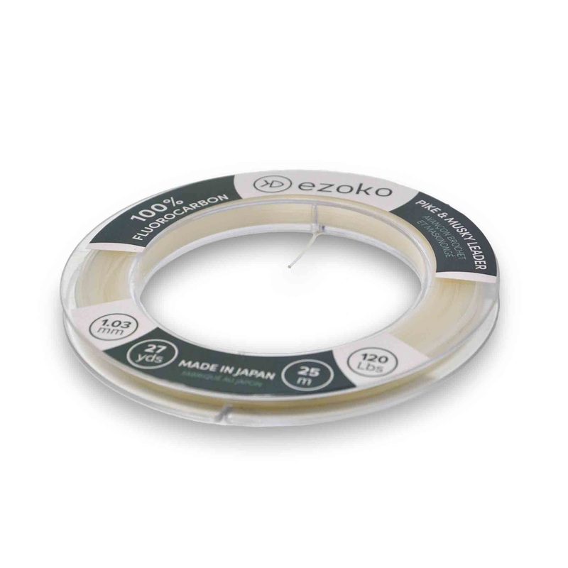 At EZOKO, we’re not just retailers; we’re die-hard enthusiasts with a penchant for perfection in the pursuit of monster Pike and Musky. We understand that every detail counts when you’re angling for these apex freshwater predators, which is why we’ve meticulously crafted our very own EZOKO Fluorocarbon Leader – 120Lbs. It’s not just another leader; it’s your secret weapon forged from unparalleled Japanese technology.