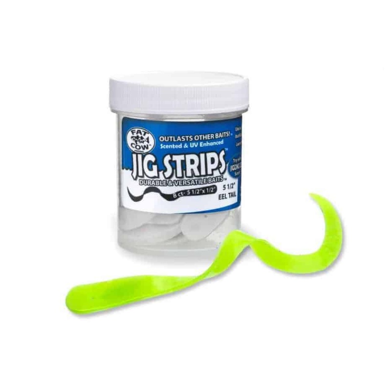 Jig Strips are durable and versatile baits developed using a unique flexible synthetic material. These trailers add strike simulating action and scent while maintaining their usefulness. Leave Jig Strips on your hook and use it over and over again. Spend less time changing your lure trailers and more time hauling in the big one try a jar today and fish on.