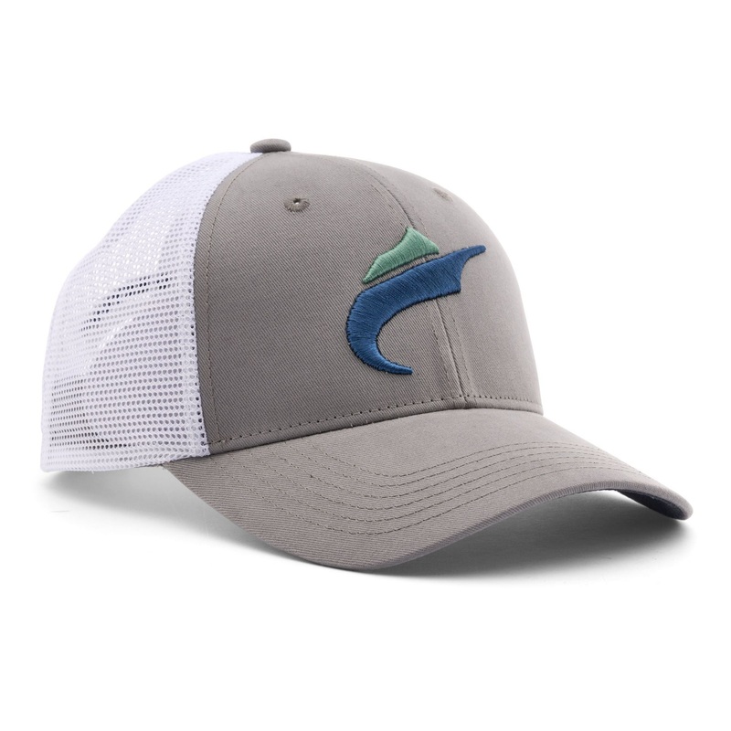 6-panel mid-profile structured trucker hat featuring “3D”embroidered FIN-NOR front logo with embroidered logo on left-wearing side. Dark underbrim to reduce glare and a custom Fin-NOR logo patch sewn in the cotton twill headband.