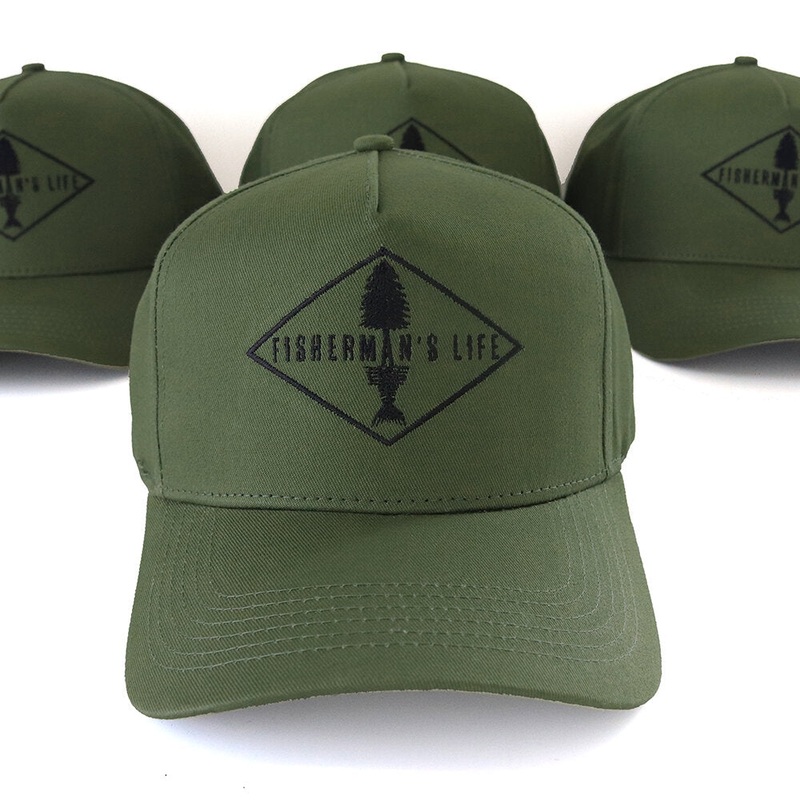 Fishermans Life Custom SNAP BACK cap in four colors.