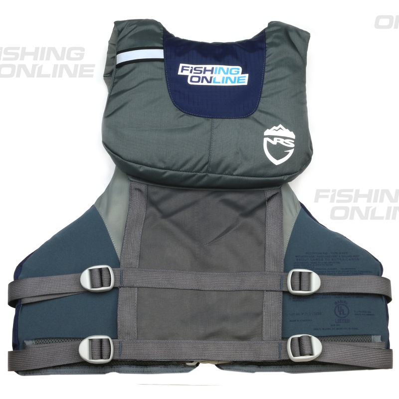 The NRS Chinook Fishing PFD has an all-new Fishing Online style! The number one selling life jacket for kayak anglers across the country comes in Custom Fishing Online colors. It features dark blue and gray primary colors with light blue accents and a Fishing Online logo on the back. This Chinook PFD still has all the great features that have made it a favorite for kayak fishermen, such as its high back to improve comfort levels on kayak seats and chairs. The Chinook is created using PlushFit foam for extreme comfort. Additional ventilation is provided by the mesh lower back of the PFD. This is a great asset during those hot summer months when you are on the water all day. To ensure that the life jacket fits each person comfortably, you are provided with the zippered front entry and six adjustment points along the bottom and sides. These adjustment points allow you to secure the jacket enough should you need it, but not too tight, so it is not uncomfortable. This PFD provides you with a large amount of storage and organizational components. Two large, zippered pockets on the front of the jacket can be used for storing your go-to baits for easy access. These pockets also have an internal organization for small but necessary items that can be grabbed in no time. There are also two smaller pockets and a tool holster on the outside of the larger pockets. All of this has been added to make an angler’s life easier while they are out on the water. Now you can have the comfort of your favorite PFD while showing your Fishing Online pride!