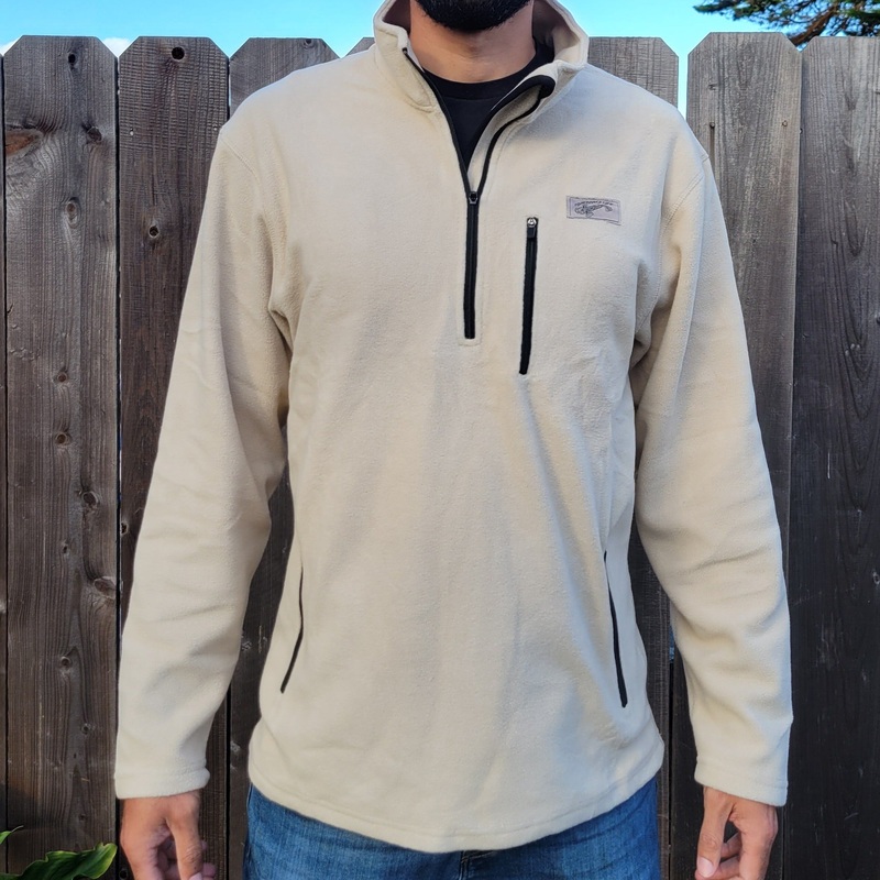 Fisherman’s Life Fleece Quarter Zip up Long Sleeve Shirt. In Camo and light tan. Garment is water resistant.Comfortable and soft enough for wearing at home as a pull over, and durable and rugged enough to wear on the field hunting, fishing, hiking or a run to the store.