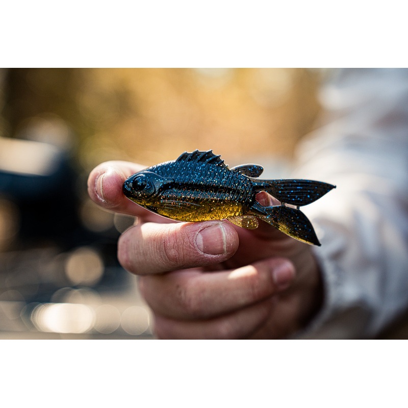 The blend of a perfect bluegill profile with realistic elements has resulted in the FlipGill. The 3D eyes, gill plates, fins, and scale pattern create a lifelike appearance. Its 3.8-inch size presents fish with an irresistible, bite-sized meal. Designed for fishing around all types of cover, including laydowns, stumps, bushes, docks, and grass.