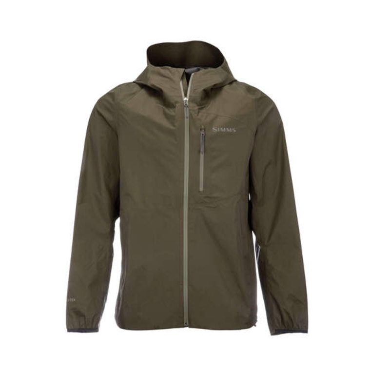 The Flyweight Shell Jacket is our lightest, waterproof-breathable shell that’s always game for deployment when summer squalls hit.GORE-TEX PACLITE PLUS provides maximized protection and best wearing comfort in a light weight, packable shell for demanding outdoor activities.Fixed hood with single cord adjustment at center back and bonded brim to shed rain.Zippered chest pocket features self stowing pouch with compatible quick clips to attach to Simms’ Flyweight Waders, packs and accessories.Two zippered hand pockets, simple cuff designed with partial stretch for easy on and off and adjustable stretch drawcord in hem for secure fit.