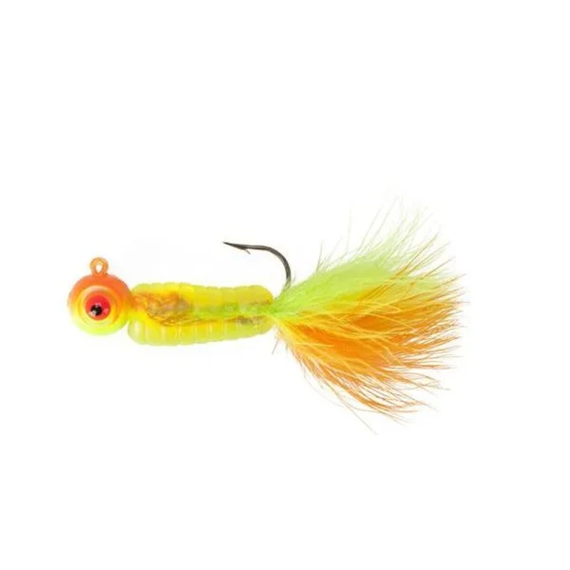 Fuzz-E-Grub Jigsare very effective when fished plain, or tip them with a minnow, crawler, leech, or other favorite live bait. Seven Fuzz-E-Grub sizes, from 1/16 oz to 3/8 oz, provide versatile jigging magic for the full spectrum of game fish, from crappies to pike. Bass and walleyes love ’em!
