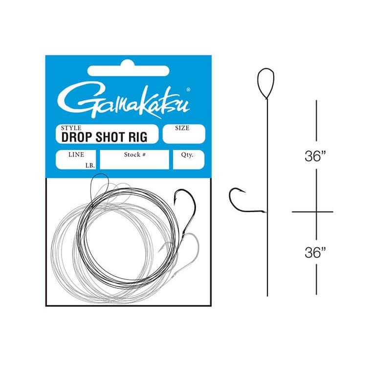 Gamakatsus Drop Shot Rigs feature a loop at the top for rigging ease with the hook tied halfway down the 6 leader. Youll save valuable time when the bites on using these premium pre-tied rigs.