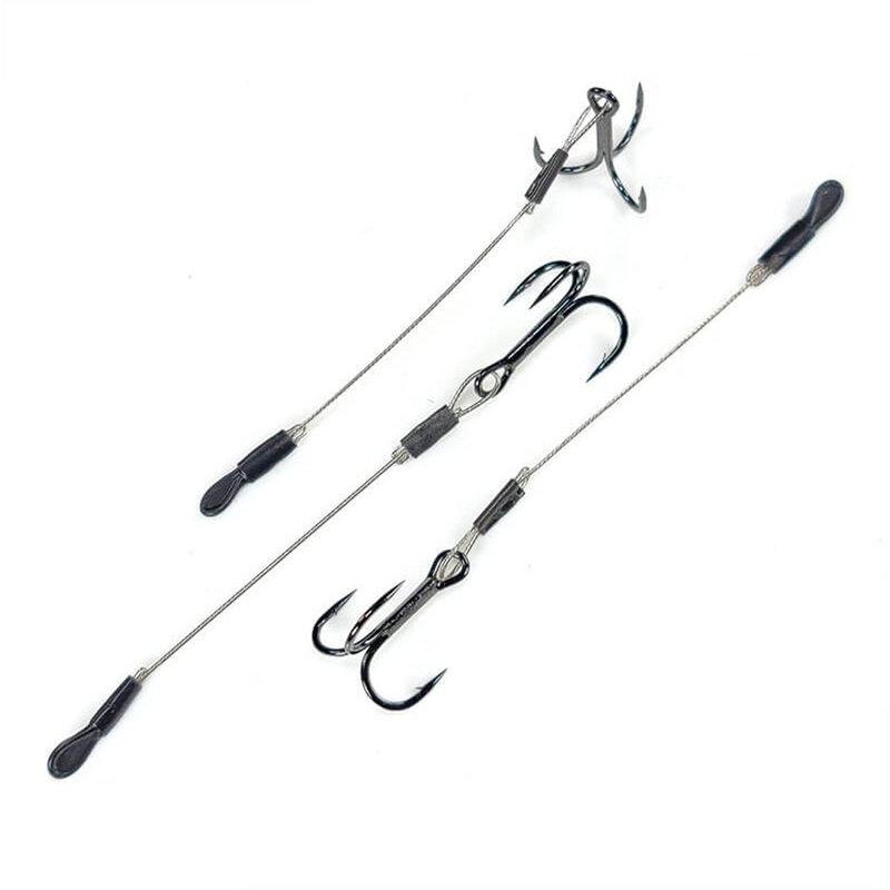 Trailing stinger rigs are the ticket for catching short-biting walleyes when jigging in cold water conditions. Gamakatsu Treble Hook Stinger Rigs are 100% ready to use and will outlast most others on the market. A coated steel wire is machine crimped and then dipped in a durable rubberized coating; allowing it to hang perfectly behind your jig or bait. And since theyre connected to a premium Gamakatsu treble hook, theyll stay sticky sharp, fish after fish, after fish.