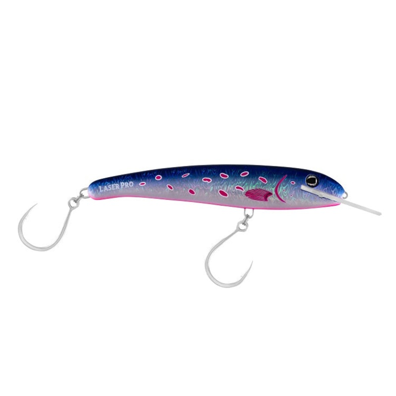 Push your fishing limits with the Halco Laser Pro 210XDD, the largest model yet, designed for big fish. With a weight of 80g and a length of 210mm, it features two 9/0 BKK Inline Singles hooks, floats with buoyancy, and is effective at trolling speeds up to 12 knots. Capable of reaching depths of 9.1m, this lure is ideal for serious anglers targeting large predators.