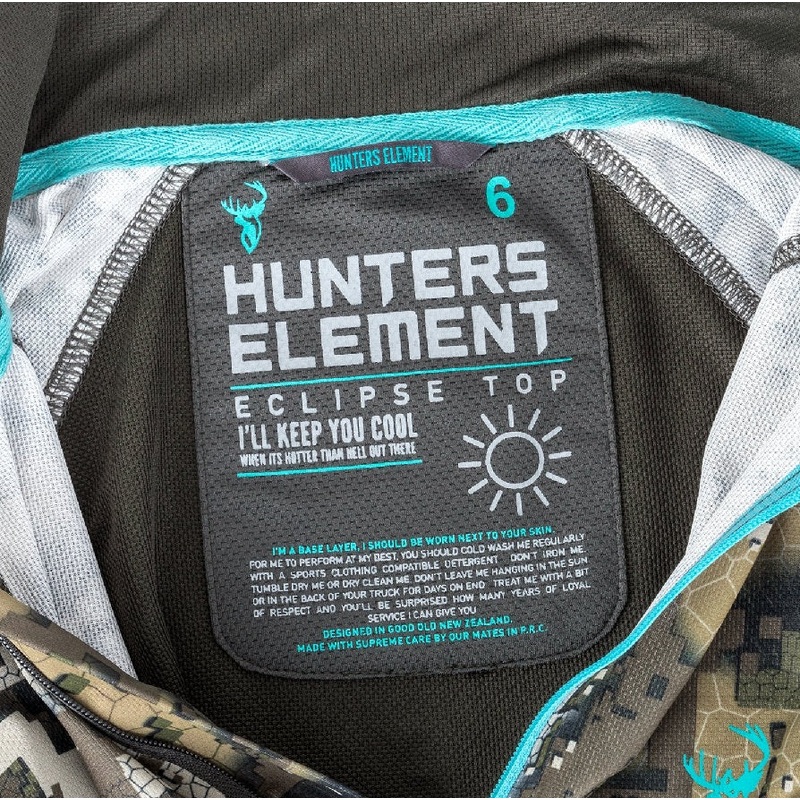 The Eclipse Top is our premium warm season base layer. It’s made from bamboo charcoal infused honeycomb fabric. This sounds weird but all you really need to know is that it wicks sweat like crazy and is extremely fast drying. It utilises two high-performance fabrics in a body-mapped design to ensure you stay dry and cool while hunting in warmer climates. It also feels amazing on the skin!