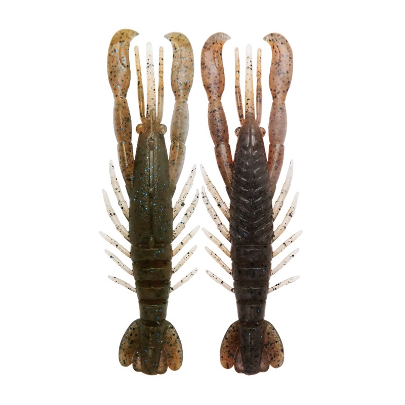 The Bottom Up Hurry Shrimp imitates the delicate behavior of shrimp with a natural micro-vibration that strongly stimulates a bass’s predatory instincts.The claws vibrate at high speed during falls and swimming.Thethickness and length of the body and legs were carefully examined during designs, and slight vibrations are made at every invitation.In particular, the action of slightly vibrating at an ultra-high pitch with no sinker fall imitates the shrimp rushing to scratch the water and drift. The tail, which looks like a fan, blows water and causes water push.In a no-sinker rig, it also acts as a water receiver that creates a kickback movement by bending the body into a dogleg. use it on a Texas Rig, Down Shot, neko rig, or remove the tail and you have an excellent jig trailer or no sinker rig.