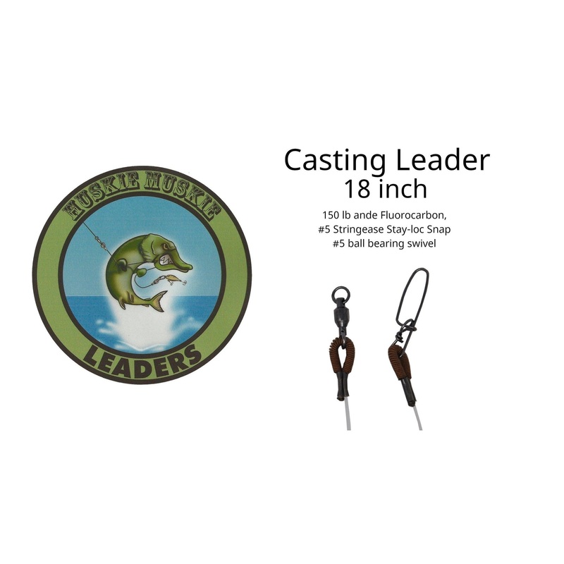 Reel in the giants of the deep with Huskie Muskie Leaders’ Fluorocarbon Casting Leaders a musky hunter’s secret weapon. Forged whith 150 lb ande Fluorocarbon, these leaders are built to withstand the mightiest thrashes and ensure your trophy doesn’t slip away.
