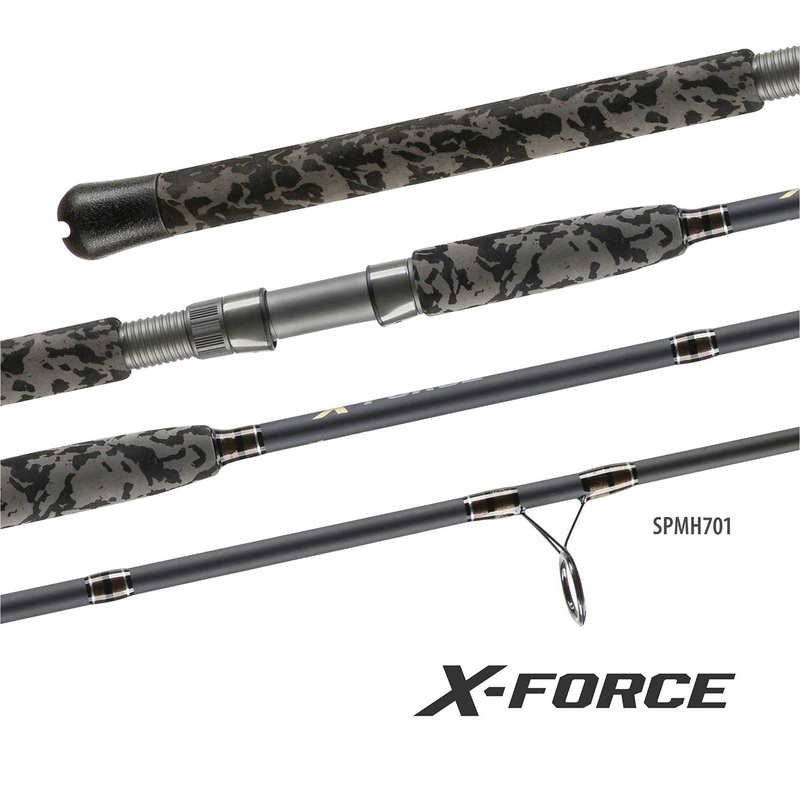 The X-FORCE Fusion Power series features tough workhorse rods that are customised for Australian fishing. The advanced composite designs combine the look and feel of graphite with the strength and power of fibreglass, and the blanks are thinner and lighter than ever before. The unique x-wrap fusion of graphite fibres and fibreglass during construction forms the light and powerful core of the Fusion Power blanks. The result is a dynamic lightweight rod series that delivers power, sensitivity, and brute strength. All models feature full fighting grip designs that are optimised for Australian fishing. The rods are also equipped with premium quality components for superior performance in saltwater environments. X-FORCE rods feature ever-reliable Fuji DPS cushioned reel seats for durability and Sea-Guide Stainless Steel guides with Titanium Dioxide guide inserts for smooth casting. The X-FORCE rod series offers advanced hardware for taming the hardest-fighting Aussie fish species. They’re serious weapons for anglers on a mission to catch fish. SPXL702 1-3KG 7′ The X-Force 1-3kg spin rod is the ultimate light tackle bait fishing rod. This is the rod for flicking lightly weighted or unweighted baits across sand flats, around estuary structure or in freshwater streams. The rod is thin and light and the blank action is progressive and forgiving. Loading up on fish with this rod is takes fishing fun to a whole new level. It’s the perfect choice for targeting bream, whiting, trout, and perch. SPL702 2-4KG 7′ The X-Force 2-4kg model is the most versatile light tackle rod in the range. This rod has a progressive casting action and plenty of strength for stopping estuary and freshwater species. It’s perfect for bream, flathead, whiting, Australian bass, perch, sooty grunter and more. The rod is ideal for bait fishing rigs, float fishing, and will even handle some lure fishing. If you had to choose one model for light estuary fishing, this is it. SPLM702 3-6KG 7′ The X-Force 3-6kg stick is go-to option for targeting large estuary flathead or trophy perch in the fresh. The rod will handle all the usual freshwater and estuary suspects but has more backbone and power for stopping larger fish. The rod can even double as an ultra-light inshore rod for snapper. It’s a great option for fishing baits in estuaries, rivers and dam habitats for species such as flathead, tailor, Australian salmon, trevally, mangrove Jack, snapper, and yellowbelly. It will also comfortably handle a variety of lures such as soft plastics and small hardbodies. SPM701 4-8KG 7′ The X-Force 4-8kg rod takes durability and fighting power to the next level. This model is the first step into some serious trophy fishing and comes equipped with a double-foot stripper guide, camo EVA fighting grips and a soft rubber gimbal. These additional features equip anglers with better fighting control and power. This is the rod for heavy estuary, heavy freshwater or inshore fishing. It’s ideal for snapper, mulloway, kingfish, barramundi, Murray cod, queenfish and more. Whether you’re sinking pilchards, dropping plastics or casting metals, this rod will cast and fight like a pro. SPMH601 6-10KG 6′ The X-Force 6-10kg 6′ model is a rugged boat rod that is designed for heavier tackle bait fishing in estuaries, rivers, dams, inshore waters and on reefs. The shorter rod length, double-foot guides, camo EVA fighting grips, soft rubber gimbal, and additional leverage power make this model perfect for boat fishing. It’s ideal for dropping down baits of squid, pilchards, strip baits, live baits and for trolling. The rod is suitable for targeting mulloway, kingfish, mackerel, tuna, snapper, barramundi, Murray cod, coral trout and a variety of other inshore and reef species. SPMH661 6-10KG 6’6 The X-Force 6-10kg 6’6 model is a versatile and tough boat rod with a little more length and casting capability. This rod is designed for heavier tackle bait fishing in estuaries, rivers, dams, inshore waters and on reefs. The extra rod length, double-foot guides, Fuji DPS reel seat, soft rubber gimbal, camo EVA fighting grips and leverage power deliver a tough bait fishing and casting rod for boat-based anglers. It’s ideal for sinking baits or casting a metal lure and is a great choice for targeting species such as mulloway, kingfish, mackerel, tuna, snapper, barramundi, Murray cod, coral trout and a variety of other inshore and reef species. SPMH701 6-10KG 7′ The X-Force 6-10kg 7′ rod has additional length for enhanced casting ability. The rod is a great choice for boat-based anglers who require the extra length for casting baits around reefs or structure. It’s also a good option for land-based anglers fishing in coastal waters or along breakwalls and the rod will also handle soft plastics and metals. This model includes double-foot guides for added strength, camo EVA fighting grips, a Fuji DPS reel seat, soft rubber gimbal, and excellent casting and leverage power. This rod is a great choice for targeting species such as mulloway, kingfish, mackerel, snapper, barramundi, Murray cod, coral trout and a variety of other inshore and reef species. SPH601 8-15KG 6′ The X-Force 8-15kg 6′ rod is the beast stopper in the range. This short and powerful boat rod is designed to put the brakes on serious fish. It’s equipped with a full set of double-foot guides, a Fuji DPS reel seat, camo EVA fighting grips, a soft rubber gimbal and remarkable leverage power. This is the rod to grab for dropping big baits around reefs and structure or for trolling in offshore waters. It has the stopping power to tackle kingfish, tuna, mackerel, samsonfish, and much more. SPH661 8-15KG 6’6 The X-Force 8-15kg 6’6 model is a heavy-duty boat rod with a little more length and casting capability. This rod is designed for heavy tackle bait fishing in inshore and offshore waters. The additional length, double-foot guides, Fuji DPS reel seat, soft rubber gimbal, c