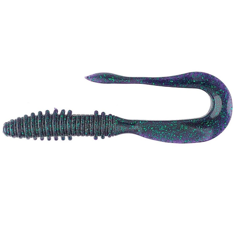 The Keitech Mad Wag is a unique soft plastic sure to catch some big fish! The ribbed body features the new “PGS” or Point Guard System, allowing this bait to be weedless. The “Thick Bone” tail creates a strong, wide swimming action that puts out a lot of vibration to lure fish in. The Mad Wag was designed with a special set of plastic densities so that the tail’s action moves even at slow speeds! This bait excels when rigged up as a swim-bait or Texas Rigged on a 5/0 size hook. You can even switch it up and use this bait as a pitch/flip style bait.