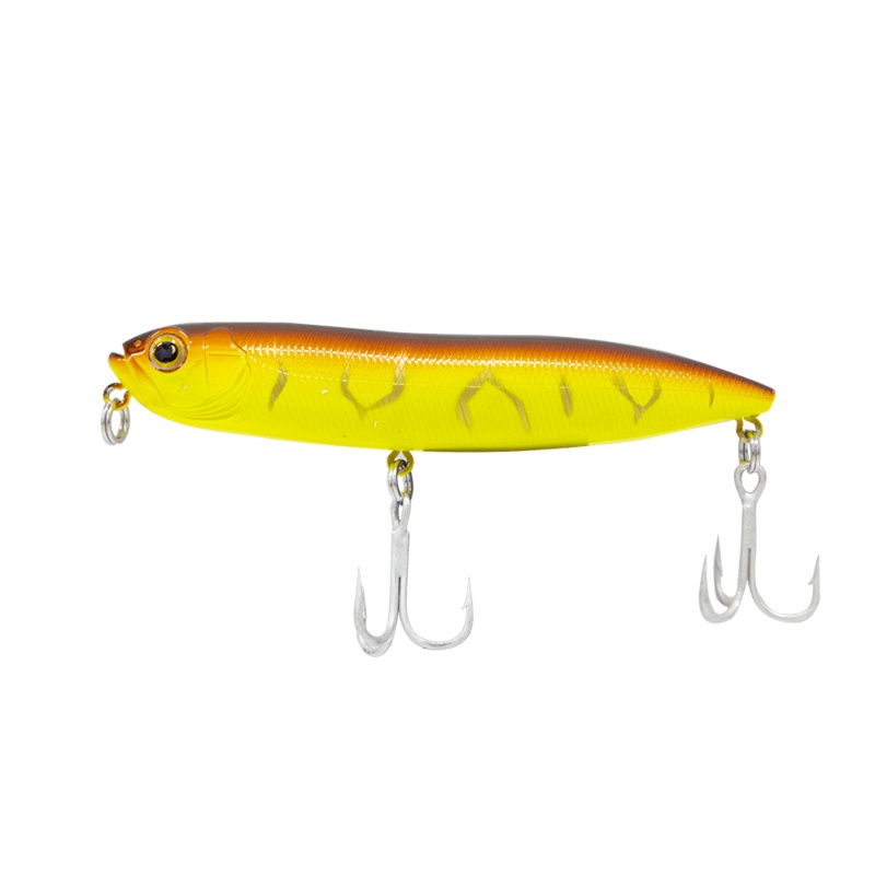 Zig zapper wakesup the killes inside the top water monster predators. It is a top water lure with slim aerodynamic shape for maximum casting distance and easy to perform “Walk The Dog Action”. This killer lure splashes water and dive a bit during jerking and retrieving. The sound from bearing increases the strike success rate Usage/Casting: (interval jerking forming ZIG ZAG walk the dog pattern).This zapper cast into the water body and retrieve with varied speed each time.