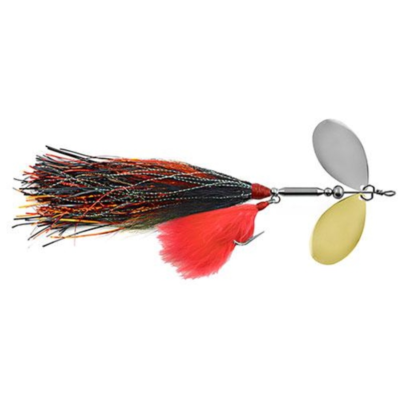 The Monsuta (Japanese for Monster), is one vicious double-bladed Muskie/Pike spinner. It churns up an incredible racket with its dual blades and the triple combination of natural bucktail, flashabou and marabou create an irresistible pulsating tail action. Finally, to land a monster, we’ve outfitted this beast with quality Matzuo extra heavy duty treble and Siwash hooks, forged split rings and trophy strength shrink tubed wire.