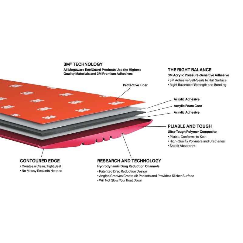 Constructed from a highly durable polymer composite, the Megaware KeelGuard absorbs impacts and resists abrasion, offering a long-lasting shield that keeps your boat looking and performing like new. Its installation is a breeze, requiring no special tools or professional assistance – just a clean surface and the included 3M adhesive system, which provides a secure, long-lasting bond.
