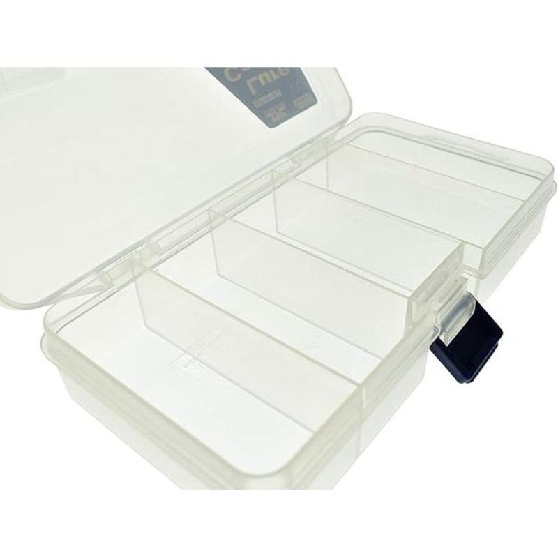 The Meiho Lure Case L is a plastic tackle box designed for storing fishing supplies. It includes 4 long fixed compartment dividers for organizing fishing lures, along with an attached hinged lid featuring a latch-style closure for secure storage during transport. The 5 compartments provide ample space for storing various tackle items and the durable plastic construction ensures that your fishing gear remains safely stored. This versatile case is ideal for any fishing enthusiast.
