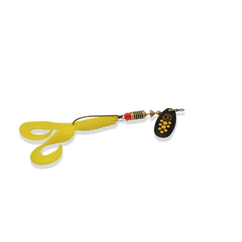 The Black Fury with a plain treble hook is one of the great all-time Mepps spinners. The special Black Fury blade spins closer to the body than the classic Aglia blade so it easily fishes shallow to mid-depths. Dressed and plain options. Very effective at catching a wide variety of freshwater game fish. Largemouth bass, smallmouth bass and walleye.